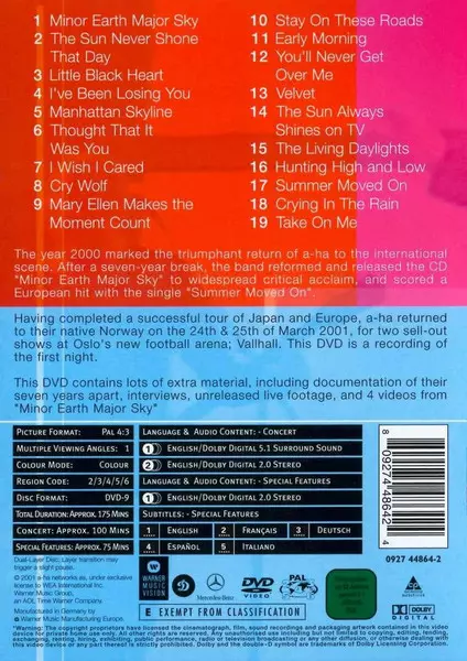 a-ha: Homecoming (Live At Vallhall) Die Version auf DVD in Standard- Auflage. Diese besondere Auflage wurde veröffentlicht in Europa im Verlag Warner Music Vision Im Jahr 2002. Album Genres übergreifend Pop, Elektronische Musik und Synth-Pop. 4:3.