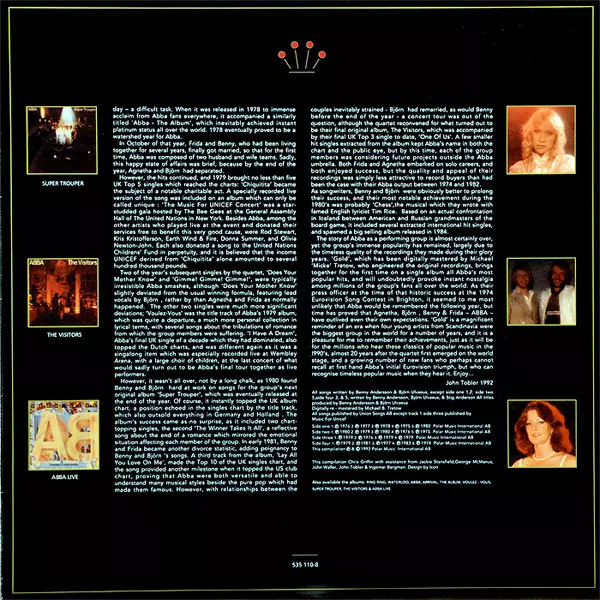First released in 1992, ABBA Gold is now the group's most commercially successful album. To date, the album has sold more than 31 million copies worldwide.Reviews"... From 1974's winning track "Waterloo" to "Knowing Me, Knowing You", "Money,Money, Money", "Dancing Queen", "Take A Chance On Me", "The WinnerTakes It All", "Super Trouper" and "Gimme!Gimme! Give it to me! (A Man After Midnight)" to the ballads "Fernando", "Chiquitita" and "I Have A Dream". No wonder this compilation is still one of the best-selling albums of all time" (Good Times, August/September 2017).