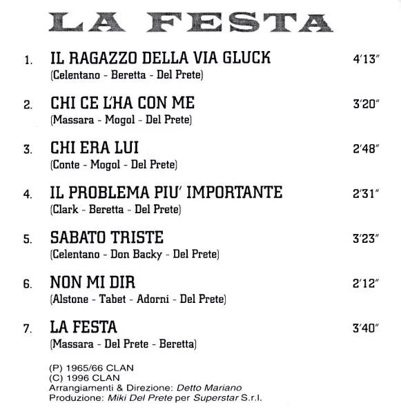 | Verlag | Clan Celentano | RTI Music |