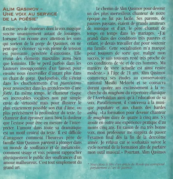 | Künstler | Alim Qasimov |