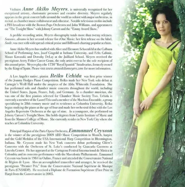 | Künstler | Anne Akiko Meyers | Reiko Uchida | Emmanuel Ceysson |