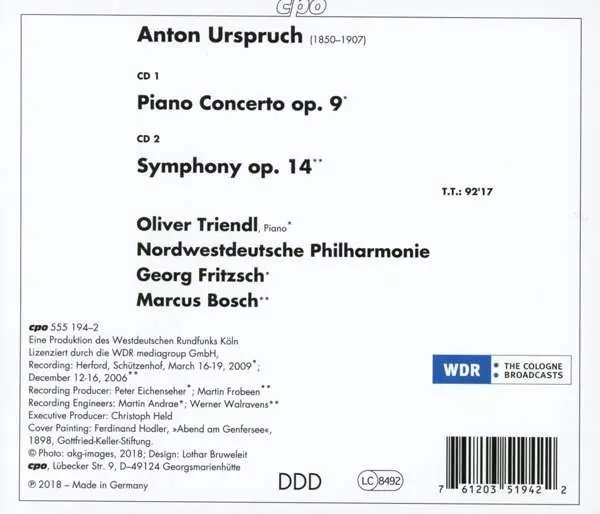 | Künstler | Oliver Triendl | Marcus R. Bosch | Nordwestdeutsche Philharmonie | Anton Urspruch | Georg Fritzsch |