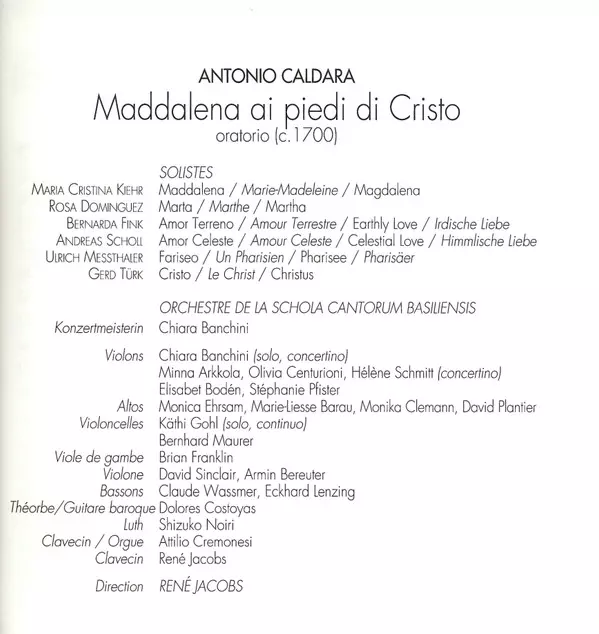 Bernarda Fink: Maddalena Ai Piedi Di Cristo Die Version auf 2CD in Standard- Auflage. Diese besondere Auflage wurde veröffentlicht in Europa im Verlag Harmonia Mundi France In Zusammenarbeit mit Harmonia Mundi am 23. August 1996. Album Genres übergreifend Klassische Musik, Barockmusik und Oratorio.