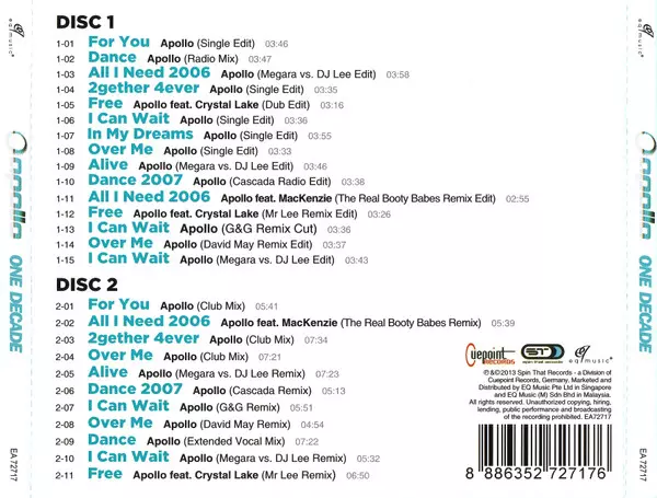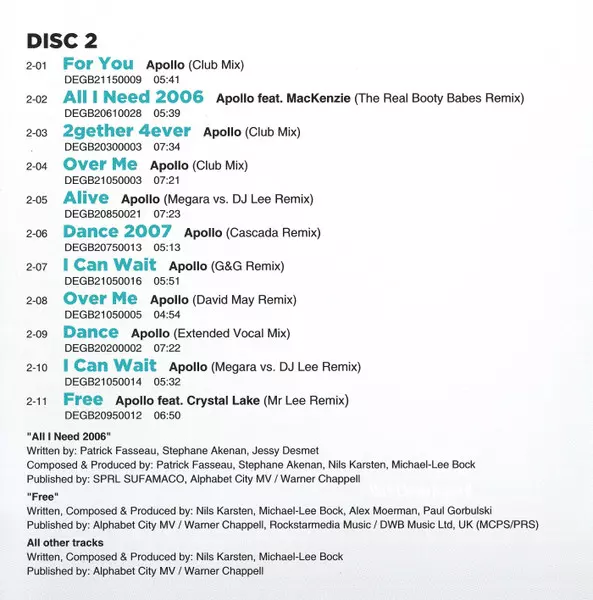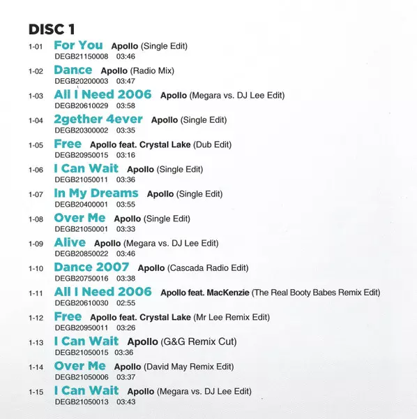 | 1-02 | Apollo: Dance (Radio Mix) | 3:47 min | |