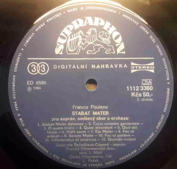 | Künstler | The Czech Philharmonic Orchestra | Czech Philharmonic Chorus | Gabriela Beňačková | Libor Pešek | Václav Zítek | Arthur Honegger | Kühnův Dětský Sbor | Francis Poulenc |