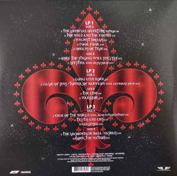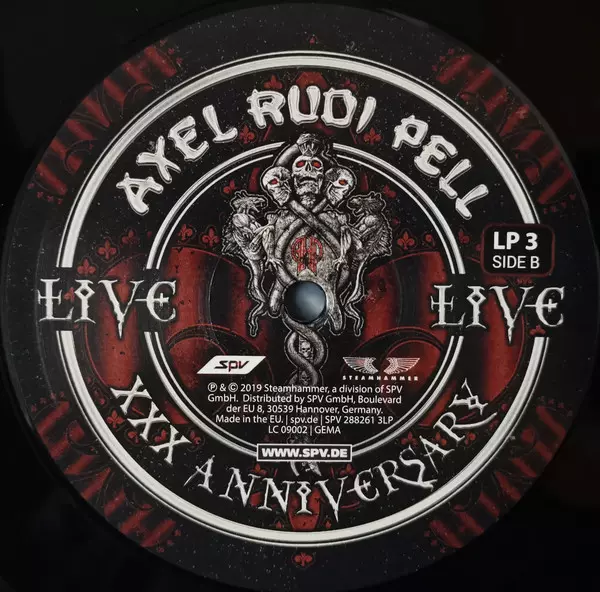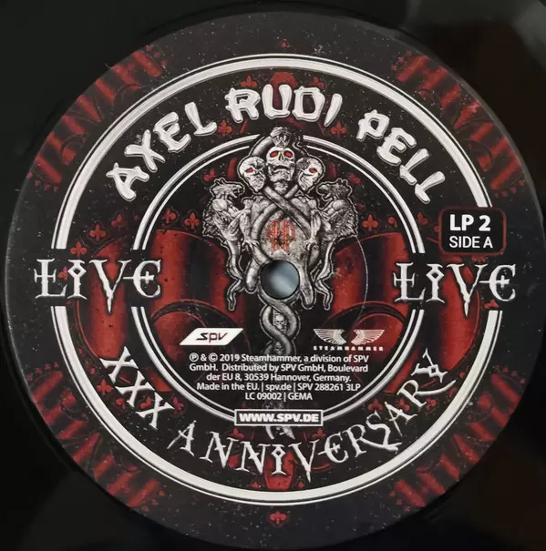 Axel Rudi Pell: XXX Anniversary Live Die Version auf Vinyl 3LP/2CD in Standard- Auflage. Diese besondere Auflage wurde veröffentlicht in Europa im Verlag Steamhammer In Zusammenarbeit mit SPV am 28. Juni 2019.