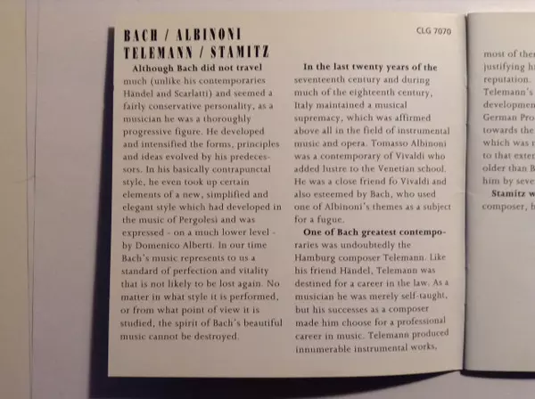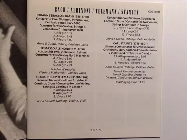 | Künstler | Johann Sebastian Bach | Tomaso Albinoni | Georg Philipp Telemann | Carl Stamitz |