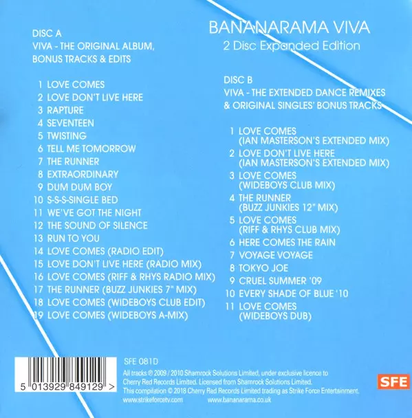 Bananarama: Viva Die Version auf 2CD in remastered Auflage. Diese besondere Auflage wurde veröffentlicht in UK im Verlag Strike Force Entertainment am 1. Februar 2019. Album Genres übergreifend Pop, Elektronische Musik, Electro, Synth-Pop, Hi NRG, Trance und Europop. 2 Disc Expanded Edition.