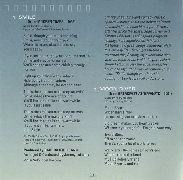 Arranged By, Conductor Jeremy Lubbock | Producer Barbra Streisand | Violin [Solo] Joel Derouin | Written-By Charlie Chaplin, Geoffrey Parsons, John Turner (2)