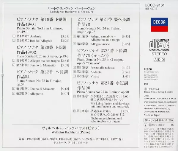 | Künstler | Ludwig van Beethoven | Wilhelm Backhaus |