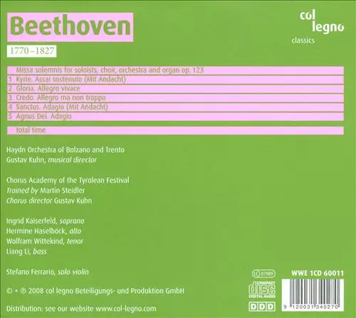| Künstler | Ludwig van Beethoven | Orchestra Haydn Di Bolzano E Trento | Gustav Kuhn | Accademia Di Montegral | Chorus Der Tiroler Festspiele |