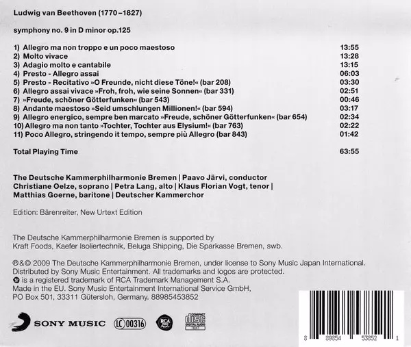 | Symphony No. 9 In D Minor Op. 125 | 63:55 min |