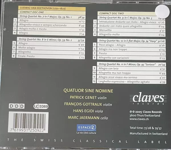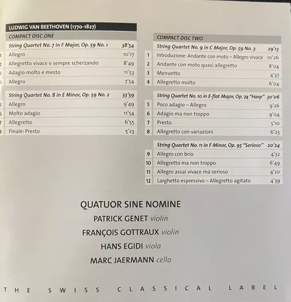 | Künstler | Ludwig van Beethoven | Quatuor Sine Nomine |