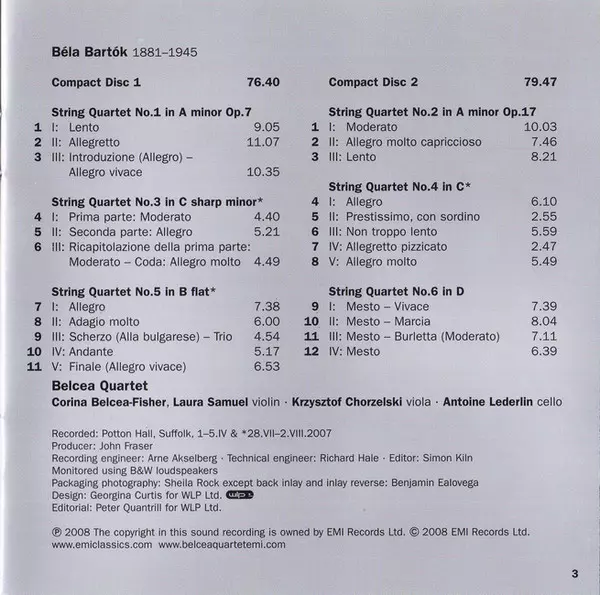 | Künstler | Béla Bartók | Belcea Quartet |