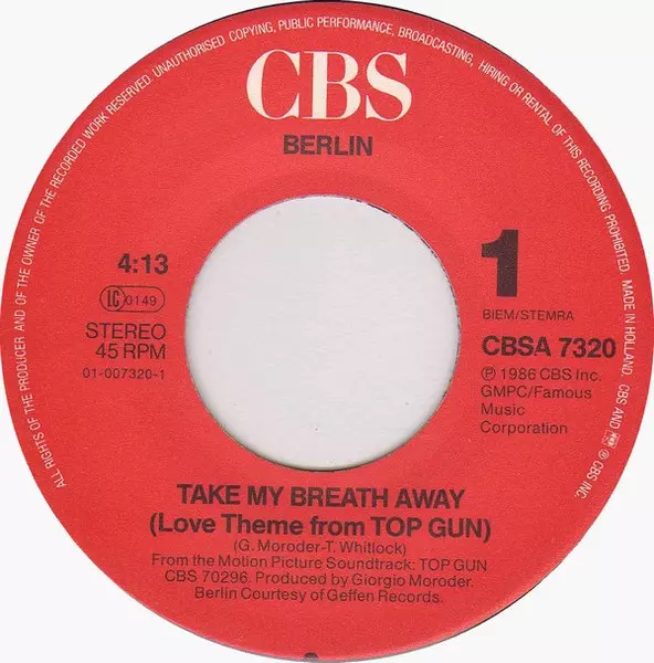 | A | Berlin: Take My Breath Away (Love Theme From "Top Gun") | 4:13 min | |