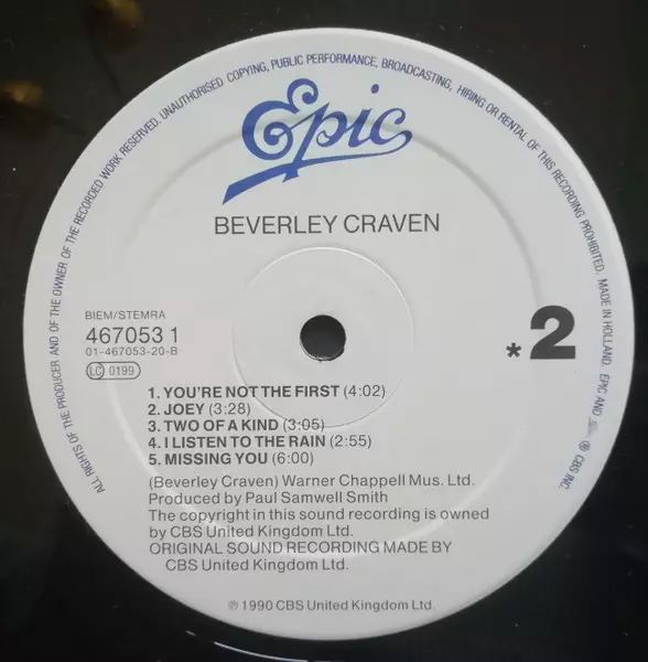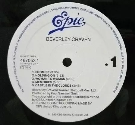 Beverley Craven: Beverley Craven. Die Version auf Vinyl LP in Standard- Auflage. Diese besondere Auflage wurde veröffentlicht in Europa im Verlag Epic Im Jahr 1990. Album Genres übergreifend Pop, Vokalmusik und Ballade.