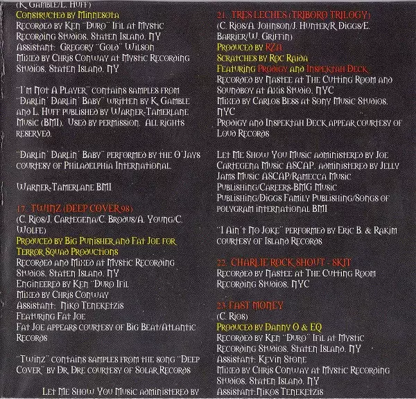 Featuring Armageddon (3), Cuban Link, Fat Joe, Terror Squad, Triple Seis | Mixed By Chris Conway | Mixed By [Assistant] Nikos Teneketzis | Producer L.E.S. | Recorded By Ken "Duro" Ifill | Recorded By [Assistant] Paul Gregory | Written-By Christopher Rios, Leshan Lewis