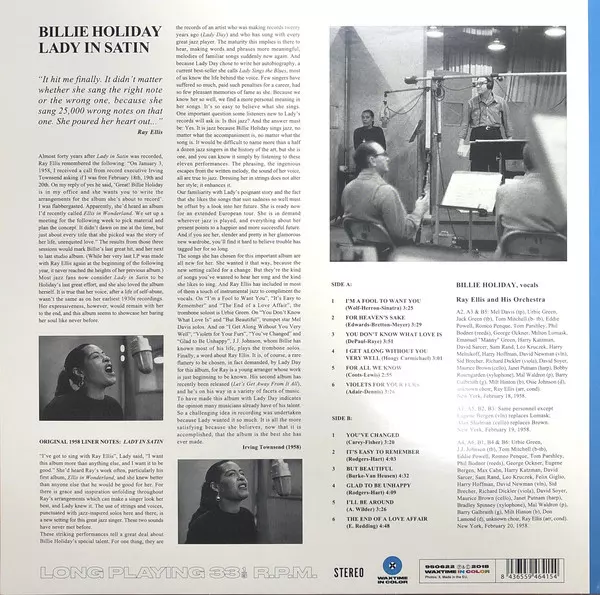"Lady In Satin" is Billie Holiday's last big hit and her penultimate album. Although Columbia made several live recordings after this album and even recorded a second album with Ray Ellis for MGM, none of them were as lasting as Lady in Satin. After all, Billie herself loved this album. Most jazz fans consider Lady in Satin to be Billie Holiday'...