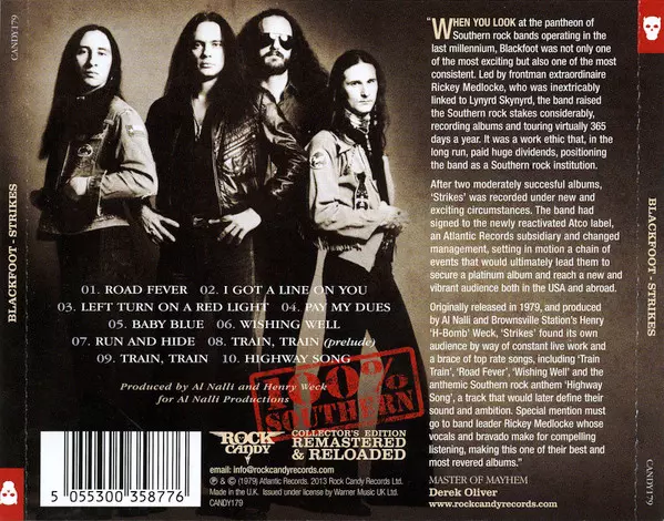 Blackfoot were one of the absolute top of southern rock. The breakthrough came when they changed their style more towards hard rock. Unforgettable albums like "Strikes", "Tomcattin" or "Marauder" and several successful singles like "Train, Train" or "Highway Song" gave them a high reputation among southern rock fans. The latter became an anthem,...