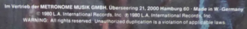 | Verlag | Far Out Productions | LAX Records |