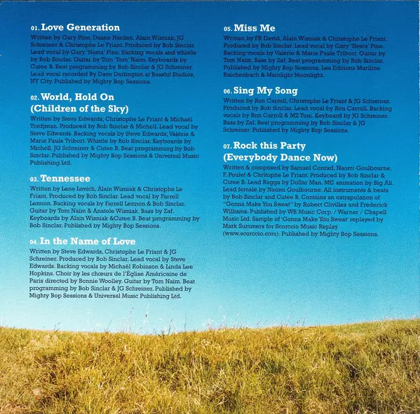 Backing Vocals Marie-Paule Tribord, Steve Edwards, Valérie Tribord | Keyboards Cutee B, Jean-Guy Schreiner, Michell | Lead Vocals Steve Edwards | Producer [Produced By] Bob Sinclar, Michell | Programmed By [Beat Programming] Bob Sinclar | Whistle Bob Sinclar | Written-By Christophe Le Friant, Michael Tordjman, Steve Edwards