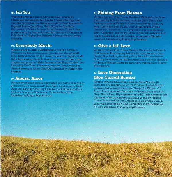 Backing Vocals Linda Lee Hopkins, Michael Robinson | Choir Choeurs de l'Église Américaine de Paris | Directed By [Choir] Bonnie Wooley | Guitar Thomas Naïm | Lead Vocals Steve Edwards | Producer [Produced By] Bob Sinclar | Programmed By [Beat Programming] Bob Sinclar, Jean-Guy Schreiner | Written-By Christophe Le Friant, Jean-Guy Schreiner, Steve Edwards