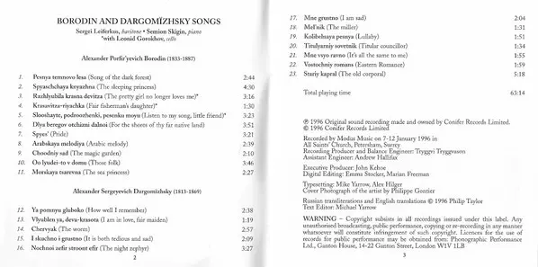 Alexander Borodin: Songs Of Borodin & Dargomïzhsky Die Version auf CD in Standard- Auflage. Diese besondere Auflage wurde veröffentlicht in Europa im Verlag Conifer Classics In Zusammenarbeit mit BMG Conifer am 11. März 1997. Album Genres übergreifend Klassische Musik und Romantik. EDR.