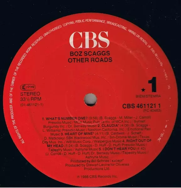 Boz Scaggs: Other Roads Die Version auf Vinyl LP in Standard- Auflage. Diese besondere Auflage wurde veröffentlicht in Europa im Verlag CBS am 30. August 1988. Album Genres übergreifend Rock, Pop Rock und Soft Rock.