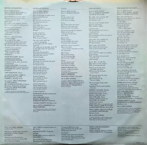 Arranged By [Rhythm], Guitar [Solo] Dann Huff | Backing Vocals Boz Scaggs, Kevin Dorsey, Siedah Garrett, Timothy B. Schmit | Bass David Hungate | Drums Jeff Porcaro | Guitar Steve Lukather | Keyboards Robbie Buchanan | Keyboards [Additional] Alan Pasqua | Percussion Lenny Castro