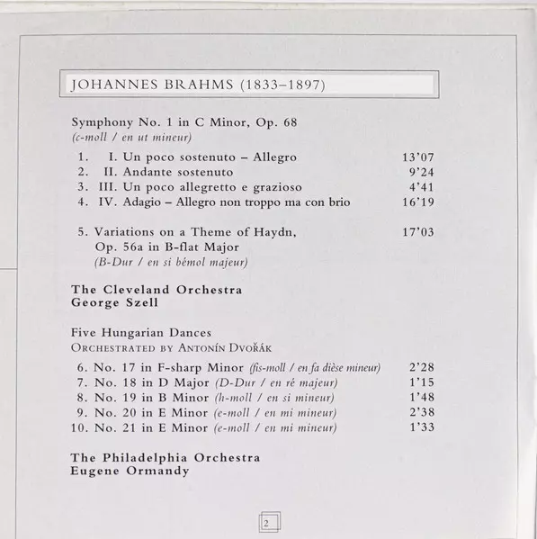 | Künstler | Johannes Brahms | The Philadelphia Orchestra | Eugene Ormandy | The Cleveland Orchestra | George Szell |