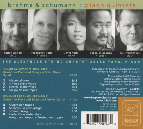 | Künstler | Johannes Brahms | Robert Schumann | Alexander String Quartet | Joyce Yang |