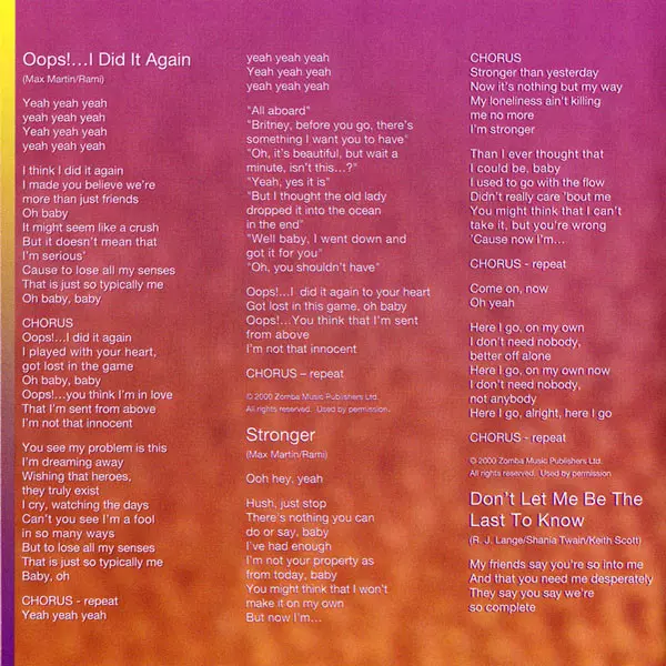 Backing Vocals Britney Spears, Jeanette Söderholm | Engineer [Additional Engineering] Charles McCrorey, Tim Donovan | Guitar Esbjörn Öhrwall | Mixed By Max Martin, Rami | Producer Max Martin, Rami | Written-By Andreas Carlsson, Max Martin