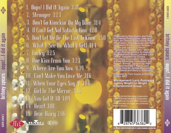 Britney Spears got even better on her 2000 CD "Oops!....". I Did It Again", the follow-up to her fantastic first album, is even better. The dance numbers (including "Oops!... I Did It Again", "Lucky", "What U See (Is What U Get)" and "Stronger") are absolutely perfect, and super soft ballads like "Don't Let Me Be The Last To Know", "Where Are You Now" and "Girl In The Mirror" go straight to the heart. The album went from 0 to 1 in the US and sold over 4 million copies.