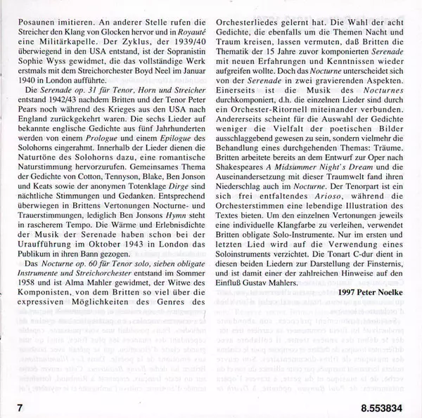 | Nocturne For Tenor, 7 Obligato Instruments And Strings, Op. 60 | 25:04 min |