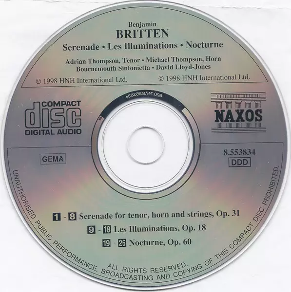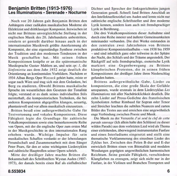 | Les Illuminations For Tenor And Strings, Op. 18 | 21:36 min | |