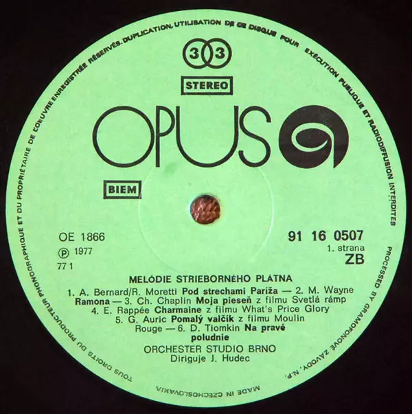 | Mehr Information | Repress 1977 Opus Czechoslovakia |