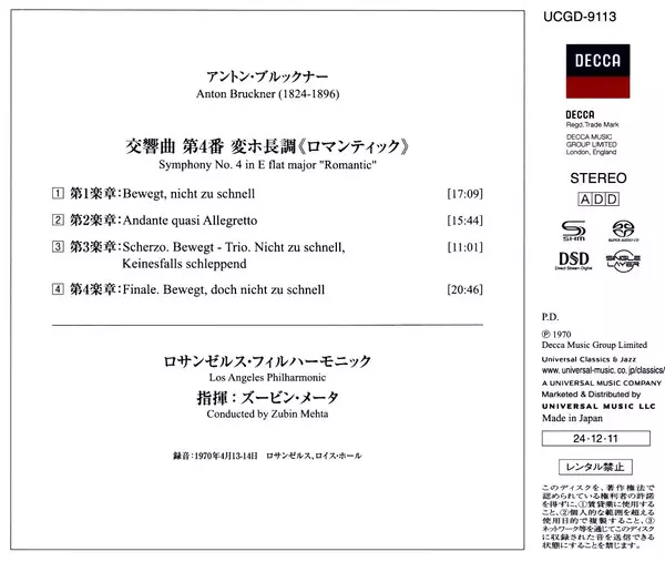 | Künstler | Zubin Mehta | Anton Bruckner | Los Angeles Philharmonic Orchestra |