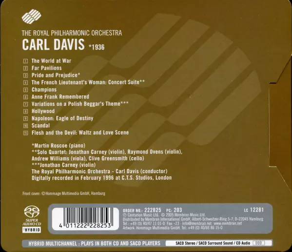 | Künstler | Carl Davis | Royal Philharmonic Orchestra | Martin Roscoe | Jonathan Carney |