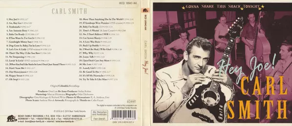 Carl Smith: Hey Joe! Die Version auf CD in Standard- Auflage. Diese besondere Auflage wurde veröffentlicht in Deutschland im Verlag Bear Family Records am 29. März 2010. Album Genres übergreifend Rock, Folk, World, & Country, Country, Rockabilly und Honky Tonk.