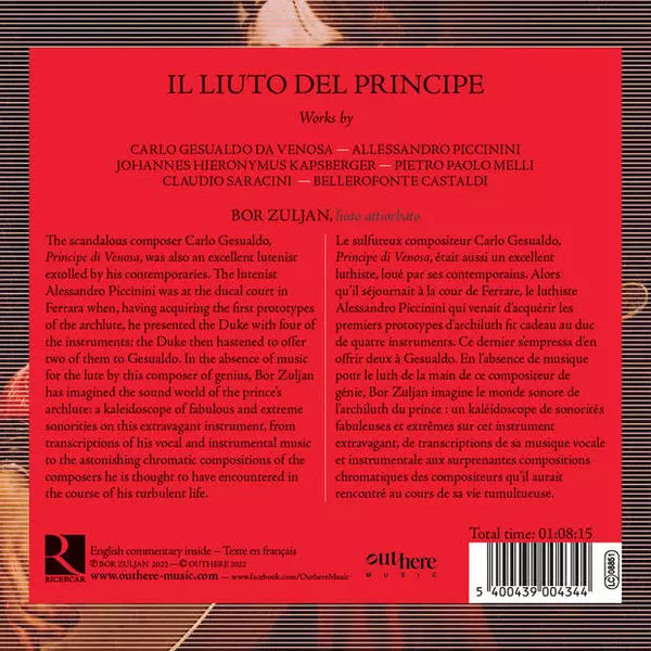 Carlo Gesualdo: Il Liuto Del Principe Die Version auf CD in Standard- Auflage. Diese besondere Auflage wurde veröffentlicht in Europa im Verlag Ricercar am 3. Juni 2022. Album Genres übergreifend Klassische Musik, Barockmusik und Renaissance Music.
