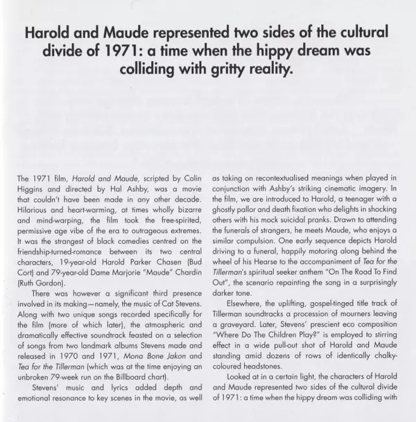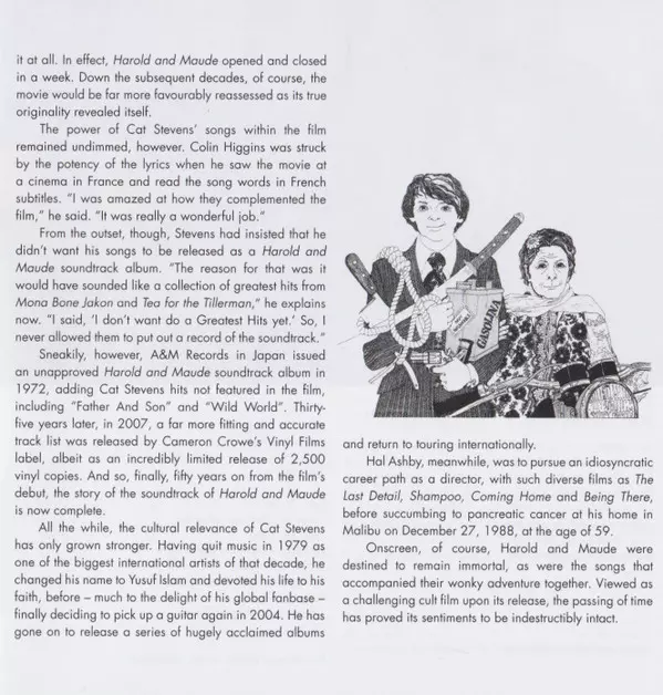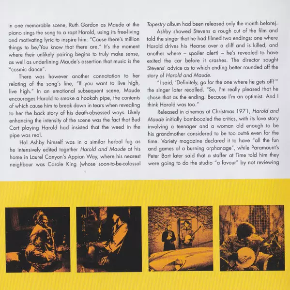 Die neue Harold and Maude (Original Motion Picture Soundtrack) wird mit einer verbesserten Verpackung mit Liner Notes und Fotos ausgestattet sein (Details bei Redaktionsschluss noch nicht bekannt).
