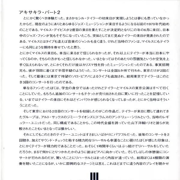 | Titel | Akisakila Part II - Cecil Taylor Unit In Japan |
