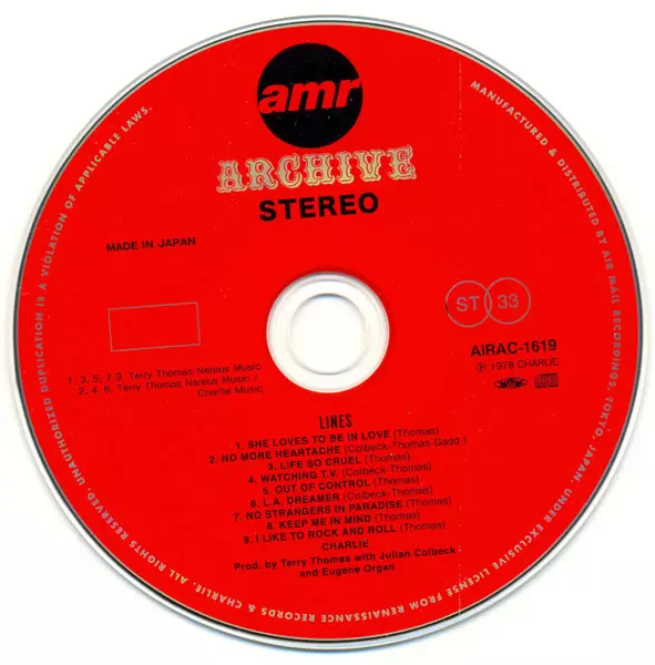 Charlie: Lines Die Version auf CD in remastered Auflage. Diese besondere Auflage wurde veröffentlicht in Japan im Verlag Air Mail Archive am 26. April 2011. Album Genres übergreifend Rock und Pop Rock. Paper Sleeve.