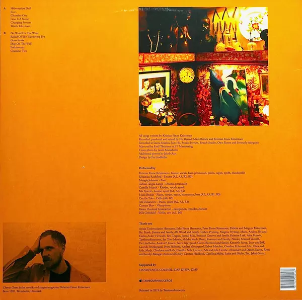 Cello Cæcilie Trier | Drums Tobias Tangaa Lange | Keyboards Camilla Munck | Saxophone Karen Duelund Guastavino | Synth Nis Bysted | Vocals, Mandocello, Bass, Piano, Guitar Kristian Finne Kristensen