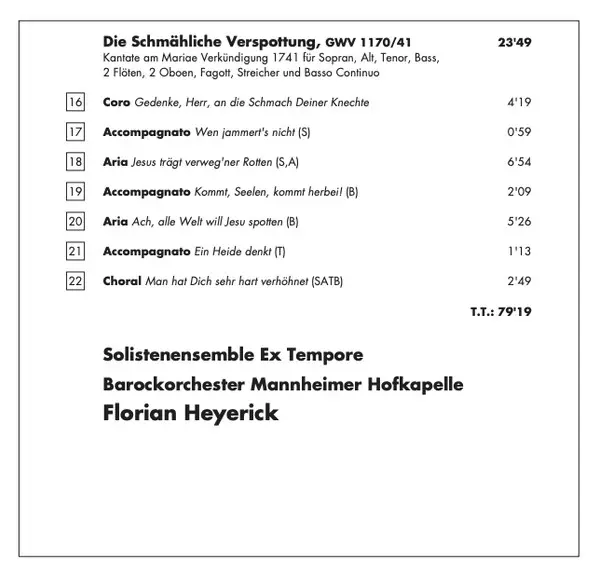 | Die Schmähliche Verspottung, GWV 1170/41 | 23:49 min |