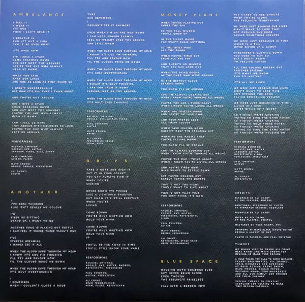 Drums Matt Brown (33) | Guitar Paul Swinton | Percussion, Bells, Bass, Guitar [Ebow] Ali Chant | Vocals, Backing Vocals, Guitar, Piano Rachael Swinton