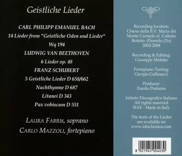| Künstler | Ludwig van Beethoven | Franz Schubert | Carl Philipp Emanuel Bach | Carlo Mazzoli | Laura Fabris |