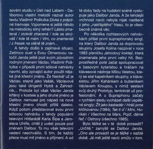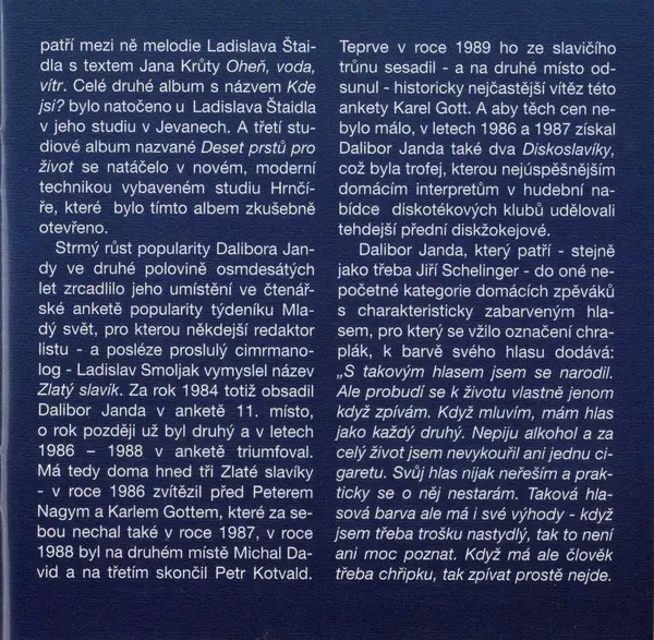 Dalibor Janda He released a new album in 2018, The Big Blob. The album is a blend of rock and folk music and was very well received by fans and critics alike. With Janda's strong voice and unique style, this album is a must listen for anyone interested in Czech music.