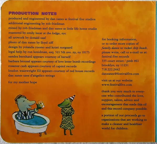Accordion Allyssa Lamb | Acoustic Bass Jacob Eigen | Drums Joe Bonadio | Featuring The Rocket Ship Singers | Harmony Vocals Barbara Brousal | Vocals, Mandolin, Acoustic Guitar, Harmonica Dan Zanes | Written-By Dan Zanes
