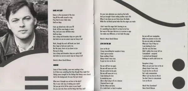 DAVID GILMOUR released his second solo album "About Face" in 1984. Recorded with Jeff Pprcar on drums, Pino Palladino on bass and Anne Dudley on synthesizer, "About Face" proved to be much catchier than his first solo album. The songs had a lot more pop influences than the titles one was used to from him and Pink Floyd. The title track "Blue Lig...